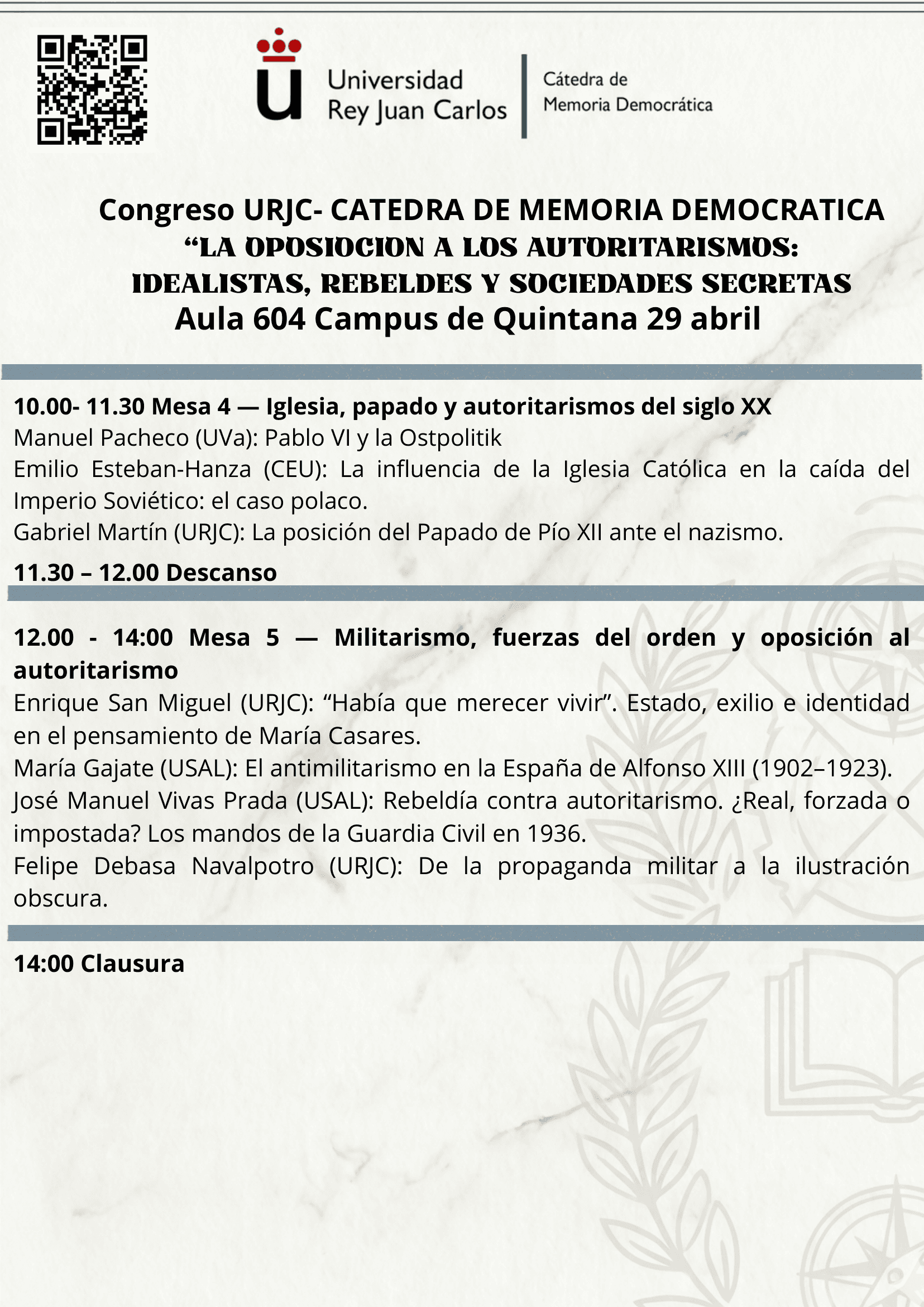 Aquí está la sección de las voces de la Cátedra de memoria democrática de la URJC